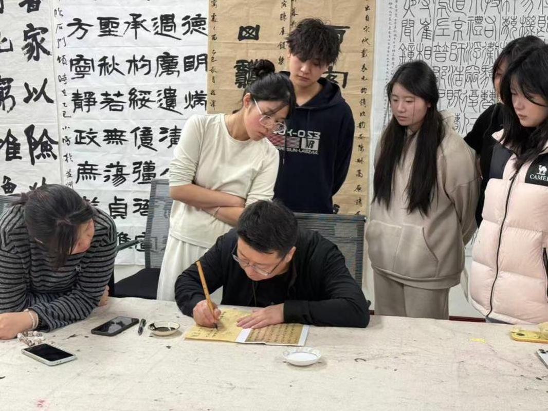 为进一步提升学生小楷书写能力,曹亚彬老师结合同学们日常小楷练习作品,进行长时间现场示范教学,针对不同书体的特点展开深度讲解,详细拆解小楷书写技巧与提升路径,为学生提供专业且实用的创作指导。会议最后,老师组织学生现场铺展毛毡进行书写实践,并逐一进行针对性指导,让学生在实操中巩固所学知识,切实提升书写水平。