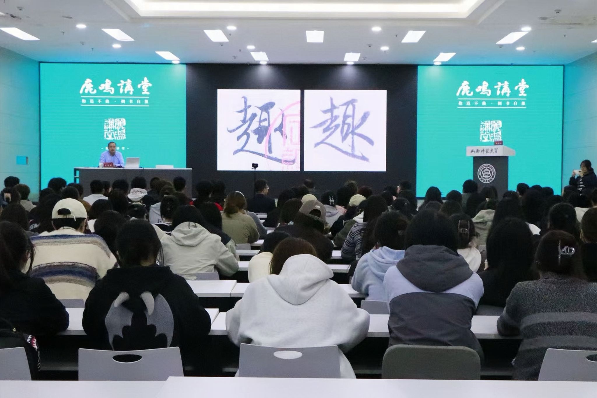 讲座现场气氛热烈,互动环节中,同学们围绕书法学习中的风格塑造、经典临摹的方法路径、传统与创新的关系等问题积极提问,王义军教授逐一耐心解答,既有理论高度,又具实践指导意义,赢得了在场师生的阵阵掌声。