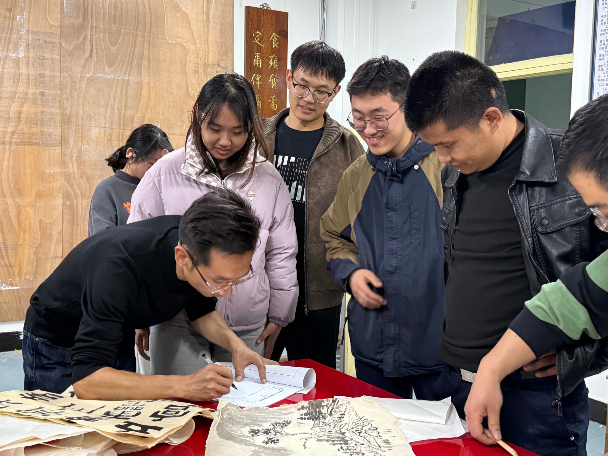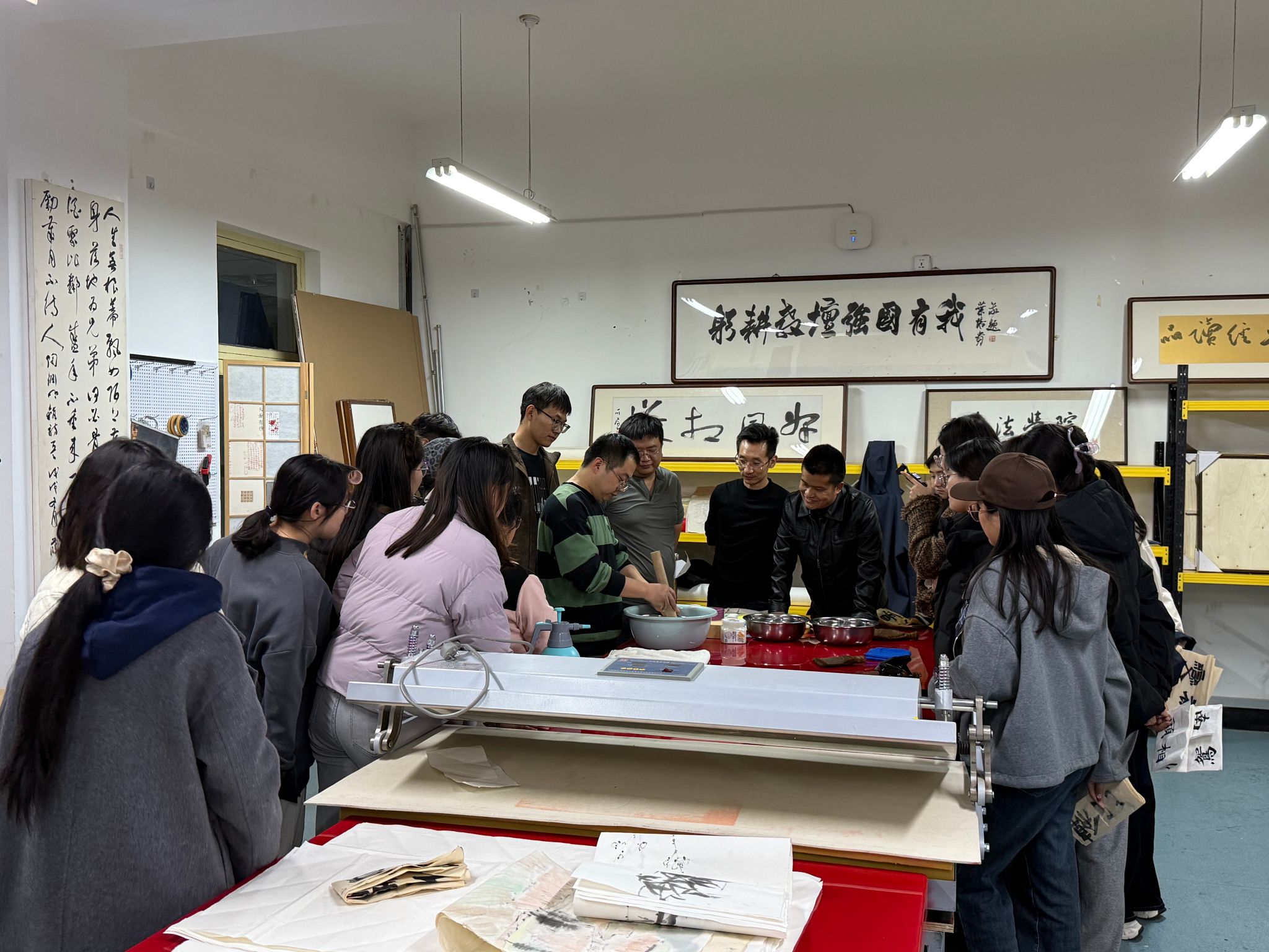 10月30日, 夫妻性爱视频 特邀山西博物院书画修复领域的资深修复专家惠明涛,为 夫妻性爱视频 学生精心呈现了一堂生动且极具实践价值的传统书画装裱教学实践课。王文清、程龙两位老师以及20余名学生参加了此次活动。