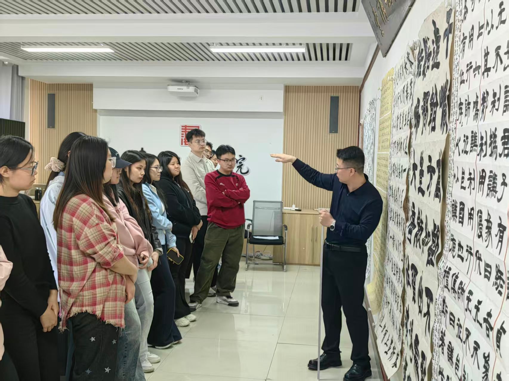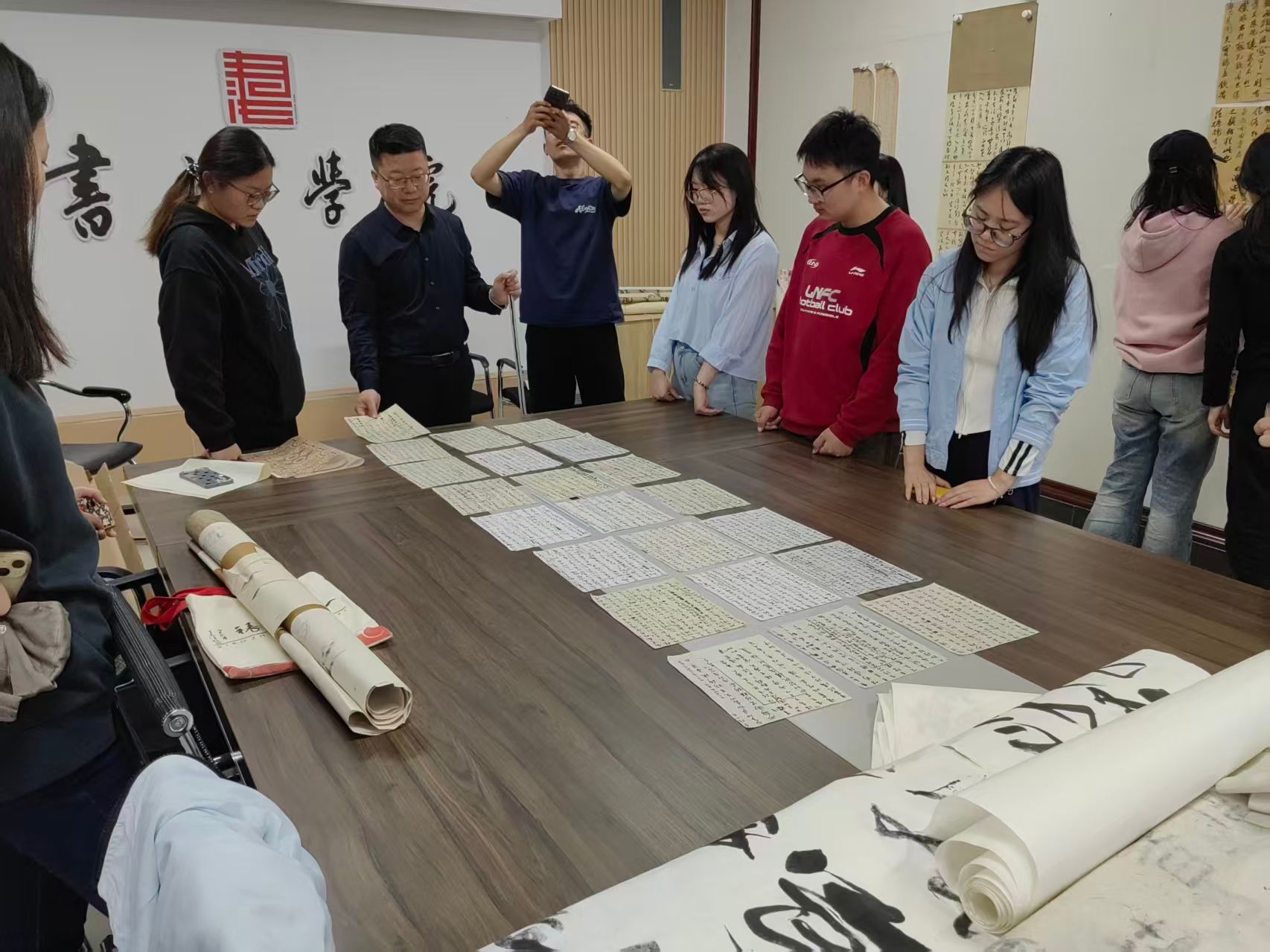 会议室顺利举办2026年第三次(总第55次)书法作品交流活动。2022级、2024级同学共同参与本次活动,活动聚焦大四学子毕业作品指导,助力学生专业能力稳步提升。